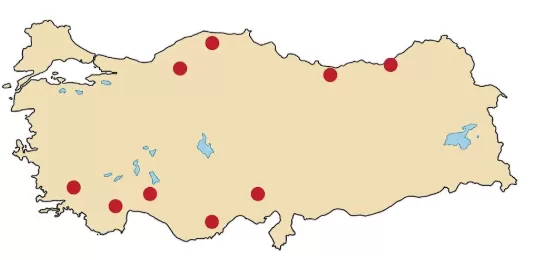 Aşağıdaki Türkiye haritasında bir sanayi faaliyetinin dağılımı verilmiştir.