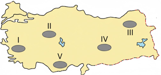 Haritadaki işaretli yerlerin hangisinde böyle bir durum söz konusudur?