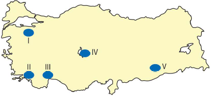 Yukarıdaki haritada işaretli alanların hangisinde ipek böcekçiliği yaygın değildir?