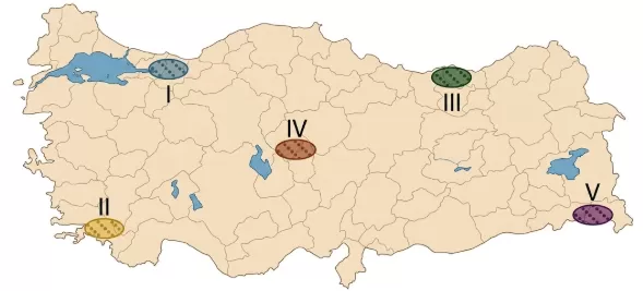 Aşağıdaki haritada bazı alanlar numaralandırılarak gösterilmiştir.