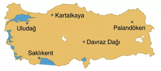 Aşağıdaki Türkiye haritasında kış turizminin geliştiği kayak merkezlerinin yeri gösterilmiştir.