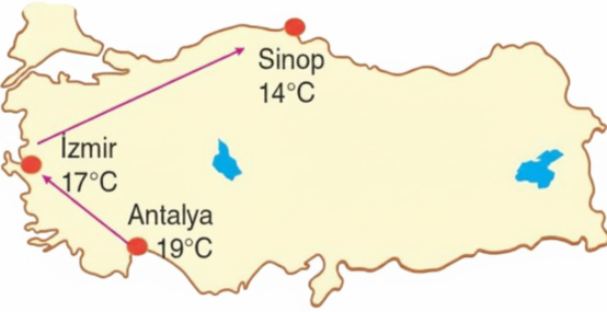 lll. En yüksek sıcaklıkla en düşük sıcaklık arasındakifark 8 °C den fazladır.