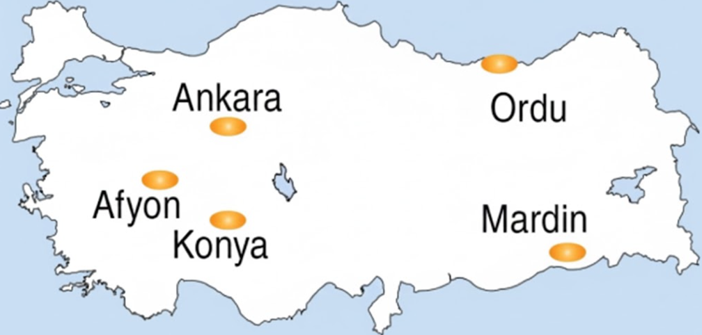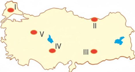 Buna göre, haritada işaretlenmiş merkezlerin hangisinde havanın ısınma ve soğuma hızının daha yavaş olduğu söylenebilir?