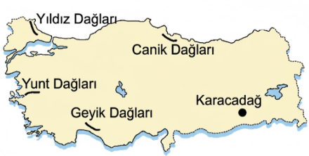 Yukarıdaki haritada işaretlenerek gösterilen dağlardan hangisi diğerlerinden daha önce oluşmuştur?