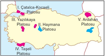 Aşağıdaki Türkiye haritasında ülkemizdeki bazı plato alanları gösterilmiştir.
